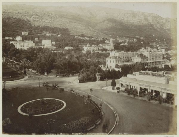 This photograph captures the Place Masséna and casino in Nice, created by Photoglob & Co. The composition is structured by a sharp contrast between the geometric precision of the buildings and the organic forms of the distant mountains. The architecture—a series of ordered arches and rectangular structures—creates a sense of human imposition on the natural landscape. The monochrome tonality flattens the scene, emphasizing the linear qualities and the interplay of light and shadow. The photograph seems to question the relationship between constructed spaces and natural environments. The orderly arrangement of the town’s architecture against the backdrop of the irregular, wild mountains evokes a sense of tension, challenging our perceptions of space and form. It’s a discourse about humanity's attempt to codify and control nature through design. Notice how the flattening effect of the photographic medium further abstracts these elements, turning them into signs within a semiotic landscape. The image encourages us to reconsider the cultural values embedded in our built environments and how these reflect our ongoing dialogue with the natural world.