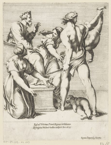 Michel Lasne created this engraving, “Suzanna en de ouderlingen”, in the 17th century. It depicts a biblical story of Susanna, a woman who was spied on by two elders while bathing. Lasne’s work reflects the societal norms of its time, where female virtue was highly policed and male authority went unchecked. Susanna's vulnerability is palpable; her attempt to shield herself speaks volumes about the threat she perceives. The male figures loom with predatory intent, casting a shadow that embodies an abuse of power. The engraving uses the narrative to reinforce a moral lesson about female chastity, but it also inadvertently exposes the hypocrisies of a patriarchal society. The emotional weight of the scene resides in Susanna’s plight, challenging us to reflect on the long history of women’s bodies being a battleground for control and judgment.