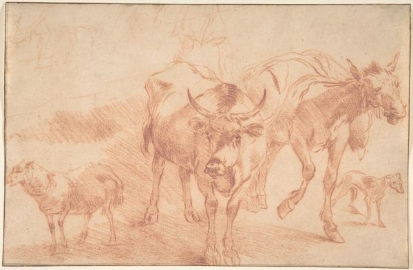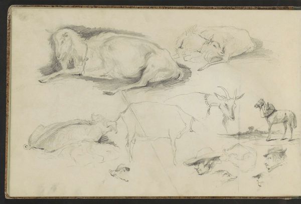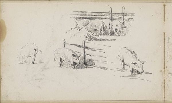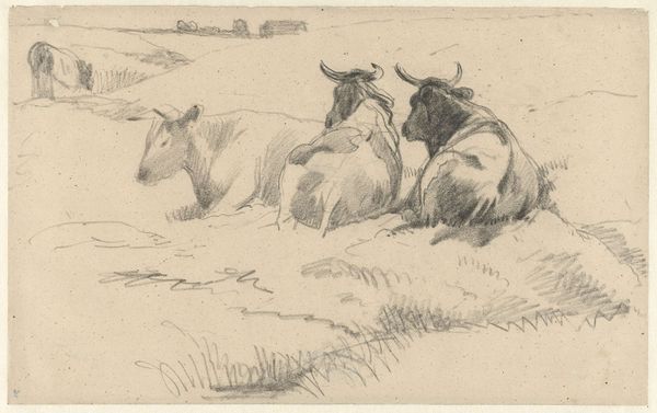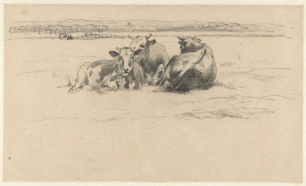 Anton Mauve captured these lying cows in a pasture using graphite on paper. Mauve's choice of graphite, a humble material, mirrors the simplicity of rural life he depicts. Notice how the varying pressure of his pencil creates depth and texture, from the soft shadows on the cows' bodies to the light, airy feel of the open field. The grainy texture of the paper itself adds to the sketch's rustic charm, grounding the image in a tangible reality. This work reflects a broader artistic movement that valued direct observation and the honest portrayal of everyday subjects. It elevates the mundane, inviting viewers to appreciate the beauty found in the ordinary rhythms of agricultural life. It also represents the realities of labor and land, at a time when the Industrial revolution brought economic changes. By focusing on the materials and processes, we can see how Mauve transformed a simple sketch into a powerful statement about the value of the natural world, and its role in shaping Dutch identity.