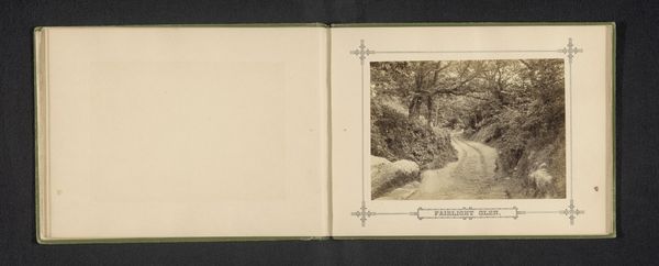 This is "Doorkijk in Ecclesbourne Glen" by Wm. E. Thorpe, an early photograph presenting a view into a densely wooded area. Imagine the social context that birthed this image, possibly late 19th century. The rise of photography coincided with evolving ideas about nature. As industrialization rapidly changed landscapes, this photo romanticizes nature as a space for escape. The image composition guides our eye along a path, suggesting exploration. Who might have had the privilege to wander and contemplate such scenes? In this period, access to nature and leisure was often defined by class and gender, reflecting a complex intersection of social factors. The monochromatic tones evoke a sense of nostalgia, inviting us to reflect on our relationship with the environment. "Doorkijk in Ecclesbourne Glen" serves as a window into a past era. It invites us to consider how social structures shape our perceptions of nature.