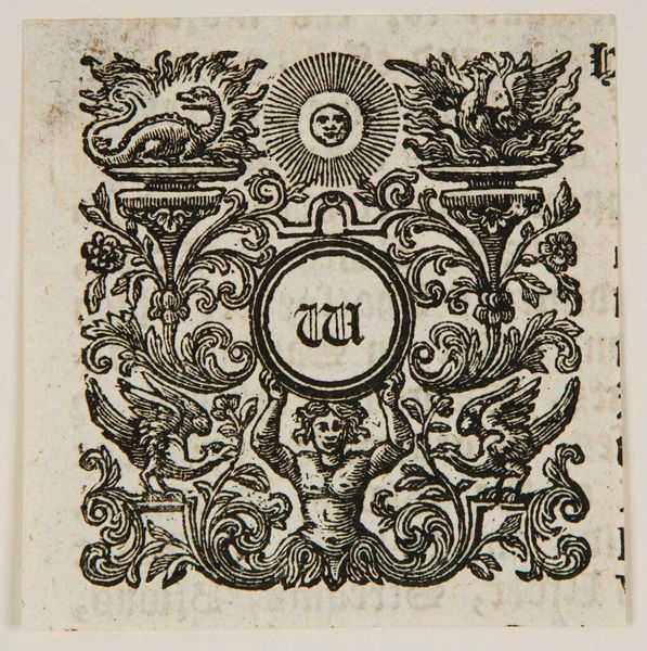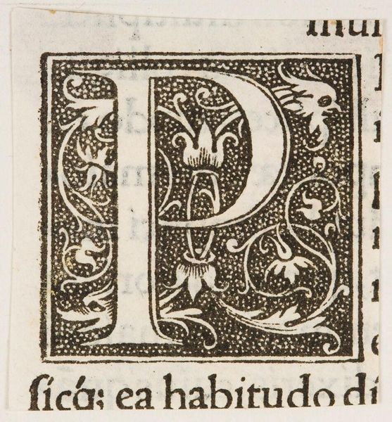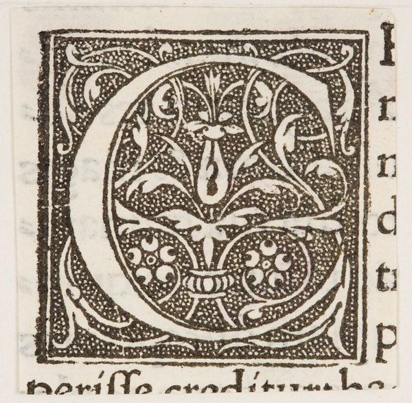 Editor: Let's explore this woodcut, "Capital H," by an anonymous artist. It's bursting with floral details inside and around the letter. What do you see in this initial, beyond just an 'H'? Curator: For me, it's like stumbling upon a secret garden within a letter! The tight composition and dense texture feel almost medieval, don't they? The 'H' itself is a framework for nature's exuberance. It hints at illuminated manuscripts, where every letter was a portal to another world. What story do you think this letter is trying to tell? Editor: Maybe about how something as simple as a letter can contain so much beauty. It certainly makes me want to pay more attention to fonts! Curator: Exactly! It’s a reminder that even the smallest things can be full of wonder and imagination. That's something I can carry with me, definitely.