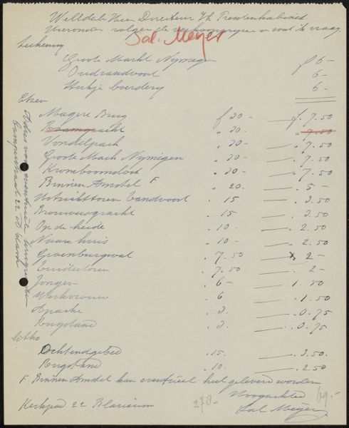 This is Frans Everbag's 'Brief aan jonkheer Hendrik Teding van Berkhout', a letter created in 1931. The letter's surface, marked by handwritten text and annotations, presents a fascinating interplay of structure and form. The composition is dominated by lists and handwritten notes that guide our eyes down the page, creating a visual rhythm. The linearity of the text is occasionally interrupted by scribbled marks. These elements function semiotically, offering a glimpse into the artist's thought process and the cultural context of the time. The structure of the letter, with its clear divisions and handwritten script, challenges fixed meanings and invites us to consider the relationship between language, communication, and artistic expression. The tactile quality of the paper, with its imperfections and visible wear, adds another layer to our understanding. It serves not only as a medium for conveying information but also as a tangible link to the past.