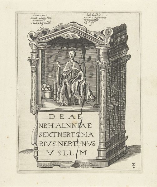 Curator: Let’s look at this print titled, "Rechthoekige cartouche met vrouwelijke herme," made in 1595. What do you think about it? Editor: It has a very formal feel, like something from a textbook, maybe? All that tiny, precise line work. I wonder, what was the intention behind something like this? Curator: It’s a map! Consider the historical context. Cartography in the late 16th century wasn't just about geography; it was also a declaration of power, knowledge, and identity. This particular map describes Dacia and Moesia, regions of the Roman Empire in Southeastern Europe. Think about how these maps participated in defining "Europe" against other continents, and even constructed hierarchies within Europe itself. What visual cues do you see that speak to power or authority? Editor: I see, okay... So, there are those classical figures decorating it - the female herm and what looks like a Roman column. Is that like a nod to the Roman Empire? Curator: Precisely! The visual language is directly referencing classical antiquity. What’s interesting is how the map reclaims this history for a contemporary audience. By visually aligning itself with the grandeur of Rome, the map attempts to legitimize its own knowledge and authority. This can be read as an early form of nation-building or perhaps even a justification for colonial ambitions. How might those "feminine" figures play into that? Editor: Wow, that's a lot more complex than I initially thought. I had no idea maps could be so politically charged. Curator: Maps aren’t neutral. They’re actively shaping the way we understand the world, often reinforcing existing power structures. Examining them critically, like this one, helps us to decode those underlying messages. Editor: So, seeing it as more than just a geographical tool really changes my perspective. Curator: It certainly does! Hopefully, it challenges our assumptions. Maps, like any form of visual representation, are deeply embedded in the politics of their time. Editor: Definitely a different way of looking at things! I’m going to rethink the way I see maps from now on.