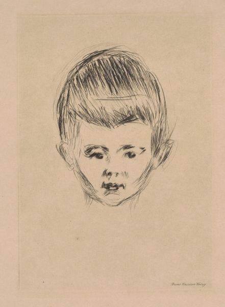 Curator: Here we have Henk Henriët's "Hendrickje," a pencil drawing on toned paper, estimated to have been created sometime between 1913 and 1945. It's currently part of the Rijksmuseum's collection. Editor: Ah, she's gazing off to the side, lost in some small world of her own. It's tender but also makes me wonder what she’s thinking—there's a definite gravity in her expression, a knowingness. Curator: I think it's interesting how the artist employed simple tools—pencil and toned paper—to render this figuration. The texture of the paper becomes part of the aesthetic, almost a collaborative effort with the material itself. What kind of paper do you think they would have used? Was it something generally used or harder to come by? Editor: Interesting point. The toned paper brings a warmth, softening the lines. Makes me think of faded photographs or memories seen through a gauze, you know? I wonder if Henriët chose it deliberately for that effect, to give the portrait a patina of age or timelessness? Curator: Or was it simply the paper they had on hand, an economic consideration in the creation of art? The use of pencil also speaks to a directness and immediacy, less about lavishness and more about availability. Editor: Maybe, but I love how a humble medium captures something so resonant. It's like magic, the simplest means conjuring the deepest feelings. I look at Hendrickje's eyes again. They invite storytelling and conjure something complex inside a minimal space. It hints at entire galaxies of experiences, dreams and secret places inside a single, soft look. Curator: So, in essence, we have here a tangible record, born from labor, process and material coming together, to give life to something much greater. Editor: Right, and isn't that always the best part of any discovery? To find the infinite hidden inside what looks finite, you know? Something ordinary holding so much, that touches you and then sends you flying?