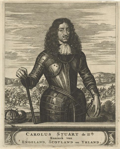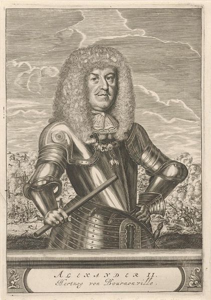 Christiaan Hagen created this engraving of Georg Friedrich, Prince of Waldeck-Eisenberg in the 17th century. Hagen captures the Prince in armor, a symbol of power and protection, with a battle raging in the background. The Prince’s elaborate wig and lace collar speak to the performative aspects of identity in aristocratic portraiture, while his steady gaze conveys authority. The image operates within a tradition where masculinity and social status were carefully constructed and communicated through visual cues. Think about how Georg Friedrich might have wanted to be seen, and the image he sought to project to the world. Hagen’s work prompts us to consider the dynamics of power, identity, and representation, inviting us to reflect on the individuals and histories behind these images. How do such portraits affirm or challenge our understanding of the past?