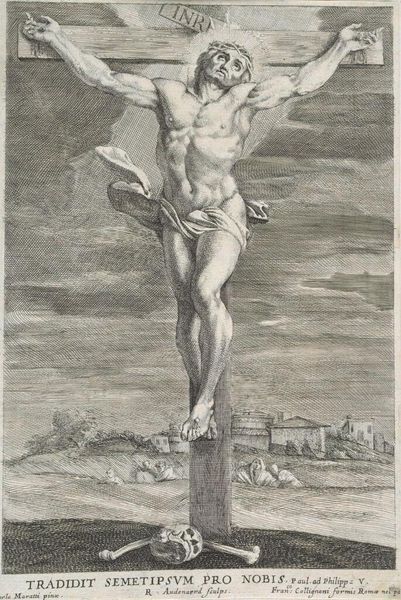 Curator: Here we have an engraving titled "Opstanding van Christus," or "Resurrection of Christ," dating from 1669 to 1678, presently held at the Rijksmuseum. It's a piece deeply embedded in the Baroque style. What's your immediate take? Editor: It's striking! There's this overwhelming sense of ethereal liberation. Christ seems to float off the page. There is this radiance of the engraver. I feel like he used light to give freedom. Curator: Absolutely. This work serves not just as a representation of resurrection, but also embodies the socio-religious currents of its time. The meticulous nature of the engraving process itself, the labor involved in producing these prints. Prints allowed to diffuse images widely and quickly through Europe in the XVI and XVII centuries. Editor: It makes me wonder about the engraver's state of mind. The delicate balance of light and shadow must have taken intense concentration. What’s remarkable is that you get some of the dramatic force that you would expect to see in oil paint. He uses such small, fine lines. Curator: Precisely, and consider the material value. The paper, the ink, the tools. The final purpose would be religious practice. And from the viewer, there's labor, a contribution, when the image is engaged to express spiritual connection. It bridges class divides. Editor: I like how it seems suspended between the earthly and the divine. A ghostly echo of the human, breaking free. You get a real feeling of release and ascendance. Almost as if that engraver thought freedom might lie in devotion. Curator: So we've moved from initial aesthetic appreciation, thinking about material practices and broader networks that shaped both its creation and its reception. Editor: Indeed. What started as a sensory experience, has given to this material and a broader spiritual reality, grounded in history, yet always reaching towards transcendence.