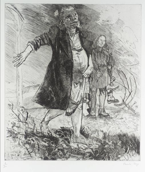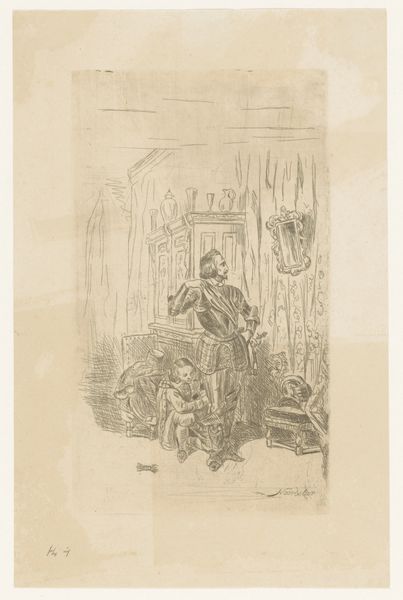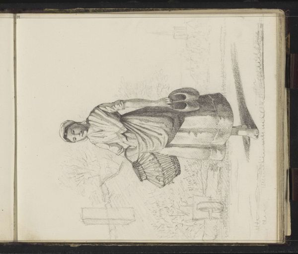 Johann Heinrich Hasselhorst created this drawing, "Alter Pfarrherr, Bienenstöcke betrachtend," using graphite. The composition, dominated by delicate lines and soft shading, evokes a quiet, contemplative mood. The structure is built on a contrast between the angular shapes of the bee hives and the curving lines of the pastor's figure. We see this interplay of geometric and organic forms also in the background. This tension draws the eye across the paper, creating a spatial rhythm. The interplay between the sharp and soft lines challenges our perception of form. This reflects a broader theme in 19th-century art, where artists explored the ambiguity of visual representation. It challenges fixed meanings, inviting us to consider the world as a play of signs and interpretations. The drawing’s subtle texture reinforces a sense of understated complexity. It offers not just a visual experience but a site for ongoing dialogue and discovery.