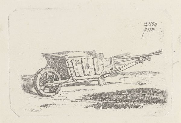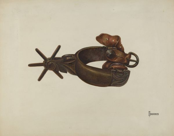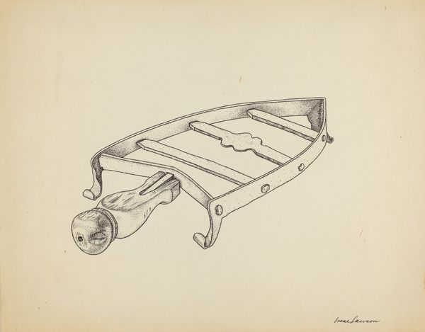 Curator: This watercolor and pencil drawing, entitled "Wheel Barrow," dates back to around 1938 and is by Geoffrey Holt. What are your immediate impressions? Editor: Well, I'm struck by how worn and used it looks, even as just an image. The artist really captures the textures and the history ingrained in this simple tool. It speaks to generations of manual labor, that cycle of hard work. Curator: Absolutely. When considering a utilitarian object such as this within the context of the 1930s, one must remember this was a time of great economic hardship, and often, survival depended on precisely this kind of labor. Everyday tools could, for certain populations, be a literal life line. Editor: That makes perfect sense. For me, the wheelbarrow itself takes on a symbolic weight. The wheel, for instance, a universal symbol of cyclical change and progress—here grounded in the most tangible of forms. It reflects an endless journey. Curator: An apt connection to cycles. During the Great Depression, it was cyclical instability of market economies that had brought the population low; an object like this might even act as a site for anxiety or disillusionment, and it can tell us how individual experiences might not coalesce perfectly within the framework of mainstream historical narratives. Editor: And that weathering effect, rendered with such detailed lines and delicate watercolor tones, also suggests resilience in the face of adversity. The marks are evidence of a working life. Curator: Precisely. Consider then the symbolism of a *male* artist like Holt rendering an item that may often have been essential for the livelihoods of both women and men, not to mention that there are distinct historical assumptions about whose labor is “valued.” And, even today, that kind of care work is still typically devalued in economic policy. Editor: Yes, that complicates my initial response. Thank you for making me see those other layers. Ultimately, I still find this quite moving. I guess it confirms the power objects have, both practical and symbolic. Curator: I agree. By examining artworks in this manner, we are empowered to interrogate the past, question our present and future trajectories, and reflect upon the multitude of ways objects influence perception and lived experience.