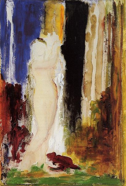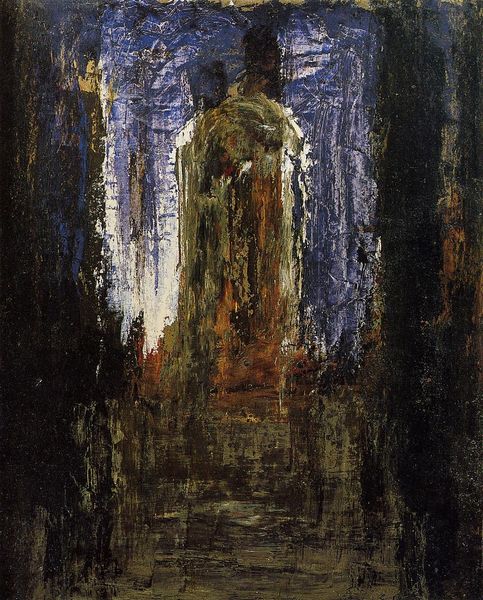Editor: So, this is Odilon Redon’s "Salome," a pastel from 1893. There's something haunting about it, a real sense of unease, and a kind of looming darkness. What strikes you most when you look at this? Curator: What I see immediately is Redon's engagement with the myth of Salome and its position in the cultural and artistic landscape of the late 19th century. He wasn’t alone, of course. Artists, writers, and composers were captivated by the figure. Why do you think she was such a prominent subject during this era? Editor: I suppose she embodies a kind of forbidden female power, dangerous and alluring? Is that what attracted artists to her? Curator: Exactly. Think about the social context. You have the rise of the *femme fatale* in literature and art coinciding with anxieties surrounding changing gender roles and female emancipation. Salome becomes a canvas onto which these anxieties and fantasies are projected. How does Redon portray this dynamic? Editor: I see what you mean. She’s shrouded, almost spectral, but also the implied horror seems focused on her. I wonder, does her veiled presence critique the male gaze by obscuring the very image it seeks? Curator: Absolutely. Consider the pastel medium itself—delicate yet capable of creating such a disturbing image. How might the choice of pastel as a medium speak to the fragility or perhaps even the artificiality of the figure of Salome and her culturally constructed image? Editor: Interesting. It makes me consider the museum's role, too. How do we, as an institution, present figures like Salome in a way that challenges these older projections? Curator: That’s precisely the right question. This work demands a dialogue – between the art, its history, and our present understandings of power and representation. Editor: It really reframes the image in my mind. I’ll have to think more about it. Curator: Precisely – the aim of art!