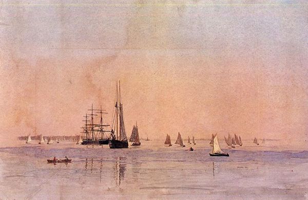 James Abbott McNeill Whistler created "Chelsea Wharf: Grey and Silver" using oil on canvas. Here, the misty veils of grey and silver create a symphony of muted tones, inviting a contemplative mood. Whistler masterfully uses horizontal bands to structure the composition, grounding the eye while the vertical masts rhythmically punctuate the scene. The limited palette draws attention to the subtle variations in texture and tone. Whistler’s tonalism here reflects a formalist approach to painting, prioritizing aesthetic harmony over narrative content. Whistler was influenced by Japonisme, reflecting an emphasis on flattened perspective and decorative arrangements. The painting challenges traditional notions of landscape art, and presents a composition where atmosphere and form take precedence over representational accuracy. The careful arrangement of lines and the exploration of tonal relationships offer an immersive experience that underscores the potential of art to evoke emotion. The artwork functions as a site for ongoing interpretation, inviting viewers to explore its rich visual language.