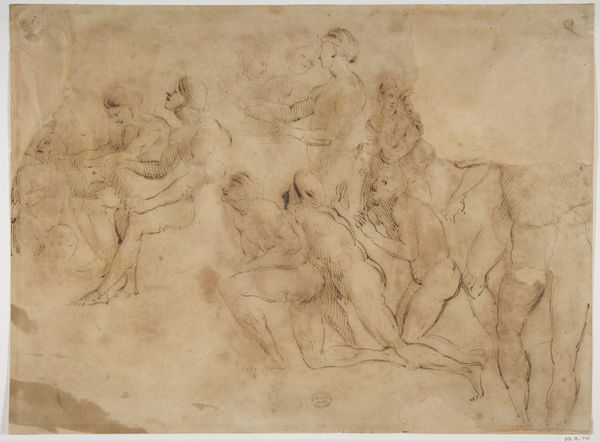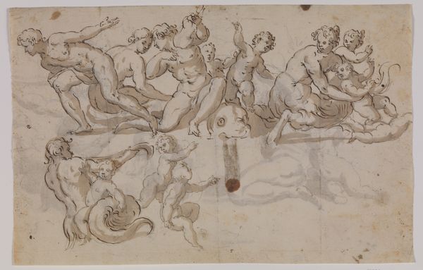 This drawing depicts Diana’s toilette, showing her reclining amidst her nymphs and symbols of the hunt. Diana, goddess of the hunt, represents the untamed wilderness, yet here, she is in a moment of serene vulnerability. The bow and quiver are not merely hunting tools. They are symbols deeply tied to Diana's identity and power. We find the bow echoed across time, from the archer constellations of ancient star maps to Cupid, playfully piercing hearts. Here, the bow lies dormant, a temporary pause in the eternal chase. It's a potent, latent energy. Consider how such symbols of power, so overtly masculine, become entwined with the feminine form. This isn’t merely aesthetic; it delves into the depths of our collective unconscious, where power and beauty intertwine, sparking tension and fascination. The image reminds us that symbols do not evolve in a linear fashion but rather resurface and are continually reinterpreted.