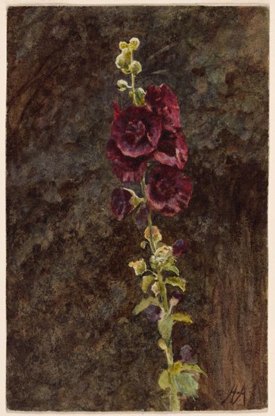 Editor: This watercolor work, “Wild Roses and Irises,” was created in 1887 by John La Farge. The blues and greens give it such a peaceful, almost dreamlike quality. What do you see in this piece, something beyond the pretty flowers? Curator: It sings to me of summer afternoons, lazy and thick with the scent of blossoms. Look at the way the irises are rendered – not photographically, but with a kind of knowing looseness. They almost vibrate. Don’t you think that he captures the very *idea* of an iris, instead of just depicting its physical form? It is a visual poem of sorts. Editor: Absolutely! It’s not trying to be realistic, it's more about the *feeling* of being in a garden. Did he often paint flowers this way? Curator: He explored many styles, even stained glass and murals, and there’s a reflective quality here that almost mirrors that medium; in stained glass, color transforms light. Here, he's letting the color of the watercolour transform the *feeling* of light. I almost imagine him meditating on these flowers, transferring that experience onto the page, rather than slavishly copying from observation. Do you see what I mean? Editor: Yes, now that you mention it, there is an emotional depth to the flowers! It makes me want to slow down. Curator: Precisely! Art should ask us to feel. It whispers stories only *we* can hear! Editor: It’s amazing how much more I see now than I did just a few moments ago. Thank you for sharing your thoughts on it. Curator: The pleasure was mine! Remember to always engage emotionally with art, not just intellectually, and it will come alive in entirely new ways.