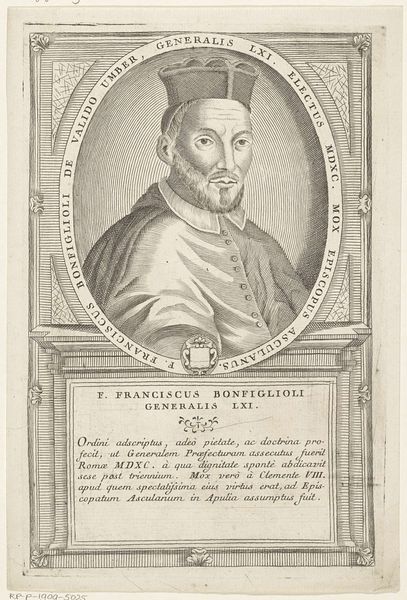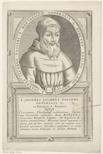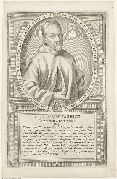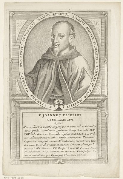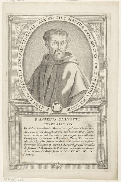 This is Antonio Luciani's undated engraving of Guillermo Robazoglio da Casale, the 32nd Minister General of the Franciscan Order. Consider how religious identity and social status intertwine in this portrait. Luciani, working in the 18th century, captures not just an individual likeness, but also an emblem of religious authority. The meticulous details in the engraving – from the subject’s serene expression to the textured folds of his habit – speak to the power and solemnity associated with his position within the Franciscan Order. The inscription surrounding the portrait celebrates Robazoglio's virtues and achievements, framing him within a narrative of piety and service to the Church. It's fascinating to consider how such portraits served to reinforce the Church's authority, presenting its leaders as figures of wisdom and moral rectitude during a period of significant social and political change. They were designed to inspire reverence and maintain social order, a reminder of the Church’s enduring influence.