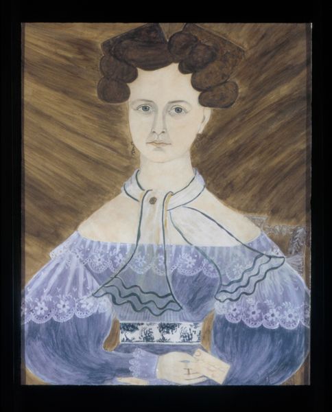 Ruth Henshaw Bascom created this pastel portrait of Mrs. William Waters sometime in the first half of the 19th century. The composition is striking in its arrangement of simple forms against a muted, blue background. Notice how Bascom used line and shape to define Mrs. Waters. The profile is rendered with delicate, almost geometric precision. The contrast between the dark hair, the stark white collar, and the somber dress creates a visual rhythm that is both formal and expressive. The texture, achieved through the use of pastels, gives a softness to the subject. The formal qualities of this portrait invite us to consider the codes of representation at play, particularly in early American portraiture where simplicity and directness often conveyed virtues of character and social identity. The subdued color palette and flattened perspective work together to present not just an image of an individual, but also an idea of her place within a structured social world. It's in the very act of interpreting these formal elements that we can start to see how art engages with the broader discourses of its time.
