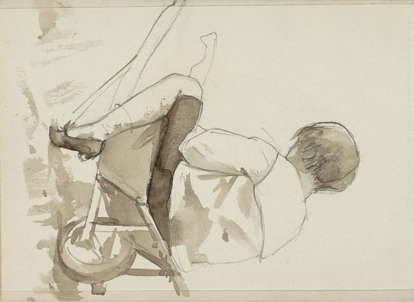 Curator: Here we have Willem Witsen's "Portret van een onbekende man," a charcoal drawing created somewhere between 1887 and 1892. Editor: What a melancholy beauty. It's like a charcoal lullaby—the shadowy face gazing upward with a quiet vulnerability. The textures feel so raw, immediate, almost like I'm intruding on a very private moment. Curator: Note the artist's focus on form, how he uses chiaroscuro to sculpt the figure out of shadow. The impressionistic touches in the background contrast sharply with the realism in the facial details. The work oscillates between a finished portrait and an expressive sketch. Editor: That tension, that back-and-forth, is exactly what grabs me. It feels unfinished in the best way possible. Like the drawing is still breathing, still becoming. The limited palette makes it seem both timeless and terribly of-the-moment. Does that make any sense? Curator: It does. The formal constraint actually amplifies the emotional intensity. The upward gaze suggests introspection, perhaps even a spiritual yearning. Witsen's confident line work coupled with areas of deliberate smudging creates a beautiful dance between precision and suggestion. Editor: Exactly! It’s as though he’s caught a ghost on paper. All this with simple charcoal. I wonder what that unknown man was dreaming, looking up toward nothing in particular. It's fascinating to think about. It all feels so loaded. Curator: Precisely. It is that capacity to evoke questions, rather than provide answers, which situates the drawing’s enduring power, no? Editor: Absolutely. Witsen gave us this fleeting whisper, leaving us to ponder and fill in the blanks, doesn't he? It’s all the more enchanting for it.