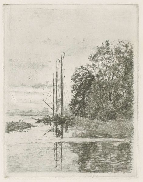 James McNeill Whistler created this artwork, Hurlingham, using etching on paper. The prominent symbol here is the sailboat, which is echoed by its reflection, doubling the image. We see the sailboat appearing across cultures and centuries, representing journeys, both literal and metaphorical. Think of the ancient Egyptians, who used boats to navigate the Nile, but also as a vessel for the soul’s journey into the afterlife. These boats facilitated the passage of earthly goods and, spiritually, represented the journey from one state of being to another. Here, the water's reflective surface suggests a moment of pause. This moment can stir a deep, subconscious recognition within us. The image of a ship can tap into our collective memory, evoking a range of feelings from a sense of adventure to a quiet, meditative state. Just as the waters flow, this motif continues its voyage through time, its essence felt and re-imagined by each generation.