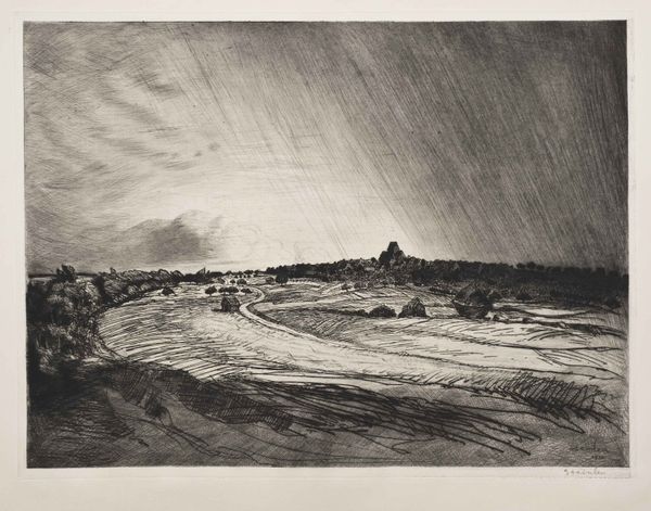 Editor: We're looking at "Snowy Path through a Wood in the Forest of Fontainebleau," a watercolor painted in 1863 by Theodore Rousseau. The scene is… chilly, obviously! It almost feels monochrome, with the muted blues and browns. There's a stark, sort of lonely beauty here. What jumps out at you when you look at this piece? Curator: Lonely is a great word! I think what grabs me is the light, or perhaps the *suggestion* of light. You see, Rousseau isn't really rendering light in a conventional, representational way. Instead, it's almost as if the blank parts of the paper *are* the light, shimmering on the snow, peeking through the skeletal branches. It's evocative, don't you think? Almost dreamlike. Editor: Absolutely. It's not photo-realistic. It's more about capturing a feeling. So, is that what makes it romantic, the mood? Curator: Partly, but it's also Rousseau’s reverence for nature itself. Consider the title: it isn't simply 'Snowy Path,' it's 'Snowy Path through a Wood in the *Forest of Fontainebleau*.' This place had a powerful draw for him and his contemporaries. They saw in it a sort of unspoiled Eden. Rousseau wasn’t just painting a landscape; he was inviting us to step into a sacred space. Or, perhaps a haunted one. Doesn't that muted palette give you the shivers? Editor: It definitely adds a certain drama. So, he’s romanticizing a real place by amplifying the mood and almost, like, stripping away some of the detail? Curator: Precisely! It is interesting, isn’t it, how an artist can reveal so much more by showing us less. And sometimes, it truly is those quieter, subdued paintings that stick with us, resonating on a deeply emotional level. Editor: That makes perfect sense. Thanks. I feel like I can appreciate the subtlety much more now.
