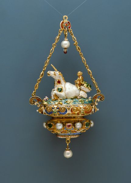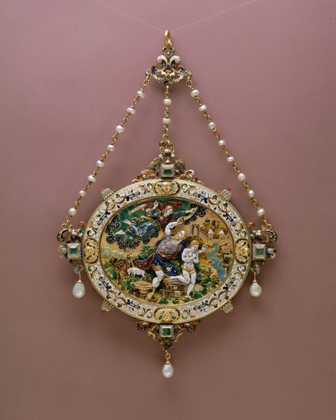 Dimensions: Overall, with pendant pearl, without bail: 3 3/16 x 1 7/8 in. (8.2 x 4.8 cm); Overall, central commesso (confirmed): 1 9/16 x 1 7/16 in. (4 x 3.6 cm); 40 x 34.7 mm