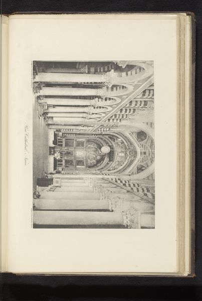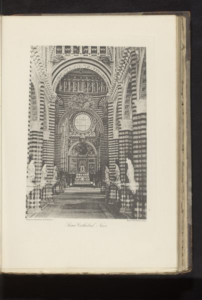 Here we see an anonymous print titled 'Interieur van de kathedraal van Pisa'. The image is dominated by strong vertical lines formed by rows of columns. A simple palette of monochrome creates a sense of depth as the eye is drawn along the central axis into the structure. The architecture is defined by a series of repeating arches and horizontal bands, creating a rhythm that is both visually appealing and structurally sound. These visual elements give the building a kind of musicality. The interplay between light and shadow across the textured surfaces creates a dramatic contrast, highlighting the inherent qualities of the materials. Here we can examine how architectural forms not only shape physical space but also influence perception. These forms reveal a complex semiotic system of signs that reflect cultural values related to power and representation. The print invites us to interpret it according to our subjective experiences.