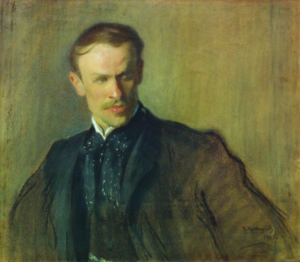 Editor: Here we have Gustave Caillebotte's "Self-Portrait" from 1889, an oil painting held in a private collection. I’m immediately struck by the direct gaze and how it conveys a sense of introspection. How do you interpret this work? Curator: It's a compelling image, isn't it? I see more than just introspection. Look closely at his eyes; there's a sense of self-awareness there, almost challenging. What symbols or gestures do you think Caillebotte uses to create this effect? Consider how his slightly turned head invites you in, but his gaze keeps you at a distance. It's an interesting dance, revealing layers of self. Editor: That’s fascinating. I hadn’t noticed the subtle turn of his head creating that tension. Do you think this tension tells us anything about how Caillebotte saw himself as an artist or as a man in society? Curator: I believe so. In terms of social semiotics, consider how portraiture served as a cultural tool, projecting status and identity. But in Caillebotte's self-portrait, we see a shift, a questioning. He wasn't simply reflecting societal expectations. The rough brushstrokes and the muted colors signify humility, which is intriguing. Is it deliberate self-deprecation or an honest self-assessment? Perhaps both. Editor: It’s like he’s inviting us to look beyond the surface. The symbolism is more nuanced than I initially thought. Thank you for pointing that out! Curator: Indeed. By studying visual clues, such as the use of light, colour, and form, this portrait unveils layers of meaning beyond what first appears. Ultimately, our exploration invites you to decode this enigmatic symbol, uncovering historical, cultural and personal perspectives to enrich your experience with the artwork. Editor: This has really opened my eyes to the subtle ways an artist can communicate complexity in a seemingly straightforward self-portrait. Thanks for sharing your insight!