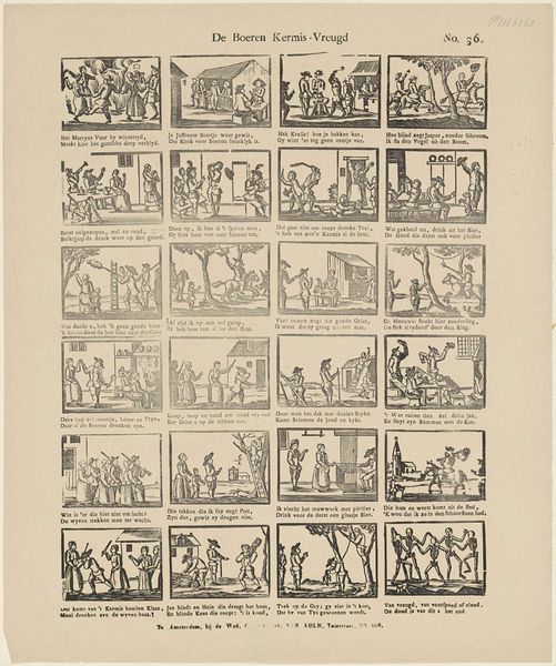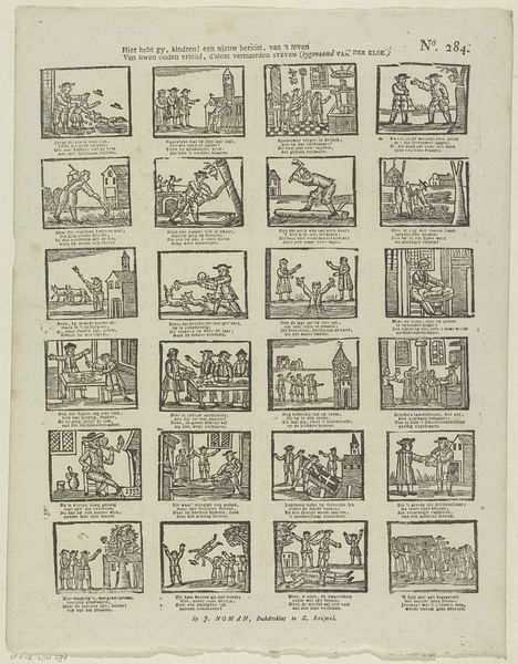 This undated print, "Leert / kind'ren! door deez' Prenttafreelen / kunstmatig lezen / onder 't speelen," was produced by Erve H. Rynders. It's a fascinating work, primarily due to its grid-like structure and use of contrasting lines to create twenty-four individual scenes. The composition is striking. Each scene, contained within a square, presents a mini-narrative. The use of stark black lines against the off-white of the paper emphasizes the graphic nature of the print. The scenes appear to be a form of visual teaching aid, possibly intended to instruct children in reading and comprehension through images. The print invites us to consider how visual structure and semiotics play a role in pedagogy. Rynders uses a series of visual symbols—figures, objects, landscapes—as a kind of language. It's a reminder that images themselves can be a form of text, capable of conveying complex ideas and cultural values.