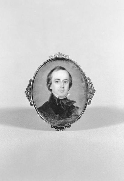 This miniature portrait of Edward Ranstead Jones was created by Walter Gould. Notice how the sitter is framed within an oval. The oval shape, frequently used in portraiture, is more than just a stylistic choice; it evokes the Renaissance idea of the "uomo ideale," the ideal man, which was often depicted in medallions. The very shape carries connotations of intellectual and moral perfection, reflecting the sitter's status and aspirations. The sitter's gaze, directed slightly off-center, is reminiscent of the "pathos formula," a visual device used since antiquity to convey thoughtfulness. It recurs in countless images, from ancient philosophers to modern-day portraits, suggesting a lineage of learned contemplation. This pose subtly engages us, inviting our gaze and prompting us to seek connection.