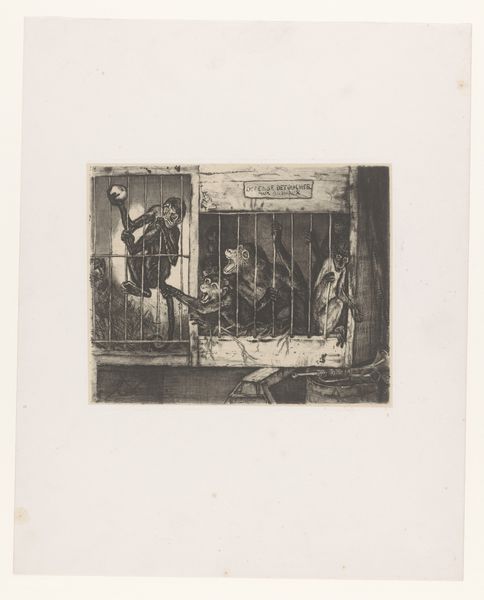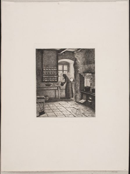 Editor: This is Jan Gerard Smits's "Kinderen kloppen op buitendeur," from 1853, a drawing that seems to have also been produced as an etching. It depicts children gathered at a doorway in winter, with a woman holding bundles of sticks looking at them. I'm struck by the overall somber, yet intimate mood. What do you see in this piece? Curator: The stark Realism offers a glimpse into the socio-economic realities of 19th-century life. These children knocking on the door – what are they seeking? Is it food, warmth, or perhaps just connection? Smits's work subtly highlights issues of class and dependency. Editor: That's interesting, I hadn't immediately considered class. How does the image do that? Curator: Note the clothing of the children, the bare feet, and the bundled firewood they seem to have collected or bartered. Compare that with the figure in the window; is that someone observing them from a position of relative comfort? What does the artist’s attention to those details suggest about his view of the social order? Does the piece evoke in you questions about who holds power and resources and who does not? Editor: I see what you mean. The figure in the window does seem disconnected from the scene below. It makes you wonder about the woman at the door as well; is she charitable or reluctant? Curator: Exactly! Smits avoids sentimentality; he doesn’t offer easy answers. This is Realism not as simple documentation, but as a prompt for critical engagement. How can this artwork from 1853 make us think differently about precarity, gender, and class relations today? Editor: Thinking about those inequalities throughout history adds another layer to my understanding of art and culture in a completely new light. Thanks. Curator: Precisely. Art is never neutral. Understanding these underlying social currents gives us a richer, more nuanced understanding of the work and its potential impact.