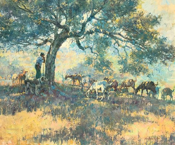 Timur Akhriev made this painting, Breezy Evening, with oil on canvas. You can see how Akhriev builds the scene with a real directness. The marks are visible, the process upfront, which gives the painting a lovely sense of immediacy. The paint is luscious and thick. Look at the way the foreground is built up with these tangible strokes, like the whole surface is breathing. Then, see how the artist has left a gap in the paint right at the bottom. That thin line of blue just peeks through, really grounding the picture, and making the rest feel even more alive. It’s a simple trick, but so effective. There's something very Hopper-esque about this painting; the color palette, and the still, almost cinematic quality. I wonder if Akhriev was looking at him too? In any case, this piece demonstrates how art is never created in a vacuum; it’s all just one big conversation.