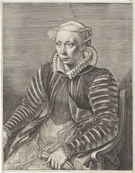 This portrait of a seated woman was made in 1659 by Jan Lievens, using graphite and potentially some black chalk. The artist has achieved a broad tonal range by layering the marks, manipulating the pressure, and allowing the paper to show through. The way Lievens has rendered the sitter’s garments tells us a great deal. Notice how the fabric of her sleeves seems almost weightless, due to the delicacy of the drawing. By contrast, the more densely worked graphite suggests the weight of the skirt gathered in her lap, and the heaviness of the carved chair she sits upon. The costume itself speaks to the sitter’s social position. While not extravagantly embellished, the details of her cap, dress and jewelry indicate a degree of comfort and status. Ultimately, this drawing is more than just a record. It speaks to the social hierarchies of the time, encoded in the way the sitter is dressed, and the quality of materials on display. By attending to these details, we recognize the degree to which art and craft are always interwoven.