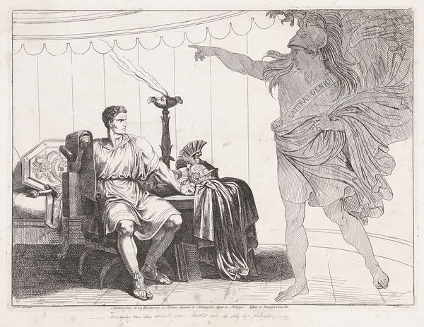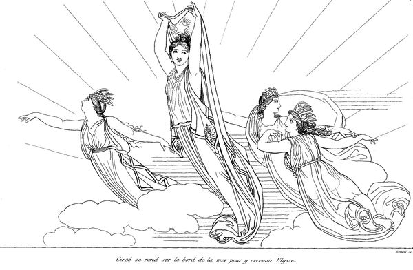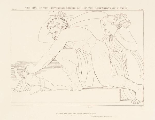 Curator: We are looking at John Flaxman’s "Illustration to Odyssey," created in 1793 using ink on paper. My first thought: this is deceptively simple, and almost feels more modern than neoclassical, with its emphasis on line and form. Editor: Absolutely. The clean lines and stark contrast evoke a sense of ancient Greek friezes, but it feels incredibly restrained. There's a certain detachment in the figures that’s quite striking, like captured in some kind of idealized social setting. It gives a silent commentary about this scene of Homer's Odyssey. Curator: Exactly! Flaxman was a master of conveying narrative through minimalist means. Here, he depicts Nausicaa and her handmaidens playing ball. Look at the composition, how he arranges the figures in a shallow space, almost like a stage. It emphasizes clarity and a kind of moral purity. Editor: But who decides what kind of purity or aesthetic? Considering Flaxman’s position in the art world and England’s imperial project at that time, the artist participated in the revival of classical art and in promoting a white, Western canon. It is hard for me not to examine the power dynamics at play in portraying this classical narrative. Curator: Of course, one can look at it that way too, but also, Flaxman was associated with reformist circles, so, his neoclassicism was understood in relation to a reform in art. He rejected the flamboyance of the Rococo as much as contemporary British political corruption. The extreme simplicity reflects a kind of political stance. Editor: That is right; he had deep dissenting beliefs against corrupt society in the Age of Revolutions, however the fact remains, the depiction contributes to an aesthetic tradition rooted in a white Western ideal, even when understood as reform. How do we, responsibly, contextualize the social role of art within contemporary cultural expectations? Curator: By acknowledging those nuances, engaging with them openly and inviting diverse interpretations. It is the institution’s duty. We are hoping this can stimulate such open and meaningful conversations between artworks and viewers like you. Editor: Beautiful. The lines now invite multiple gazes. Thank you.