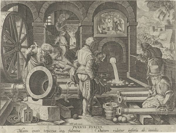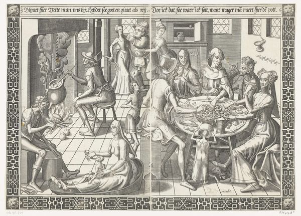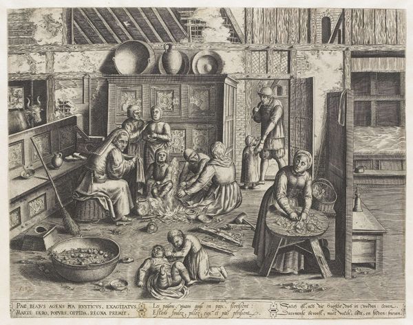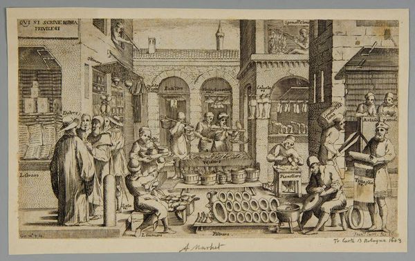 This print, Pastry Shop, was made by Abraham Bosse in the 17th Century and is now at the Metropolitan Museum of Art. Initially, the eye is drawn to the horizontal arrangement of the pastries displayed on the table. The composition of the image is divided into two distinct halves which are connected by a continuous shelf. The first half is the preparation of baked goods; and the second half is the sale. Bosse uses a semiotic system of signs to interpret the visual components and cultural codes which may have informed the artwork's making and reception. The division of labor in the shop becomes symbolic. One side is the preparation, and the other side is the selling. The composition uses a horizontal axis to create a sense of order, but the division suggests emerging social structures, where production and consumption are becoming distinct activities. The linear organization and detailed depiction of tools and products reflect early modern society's evolving economic systems and values.