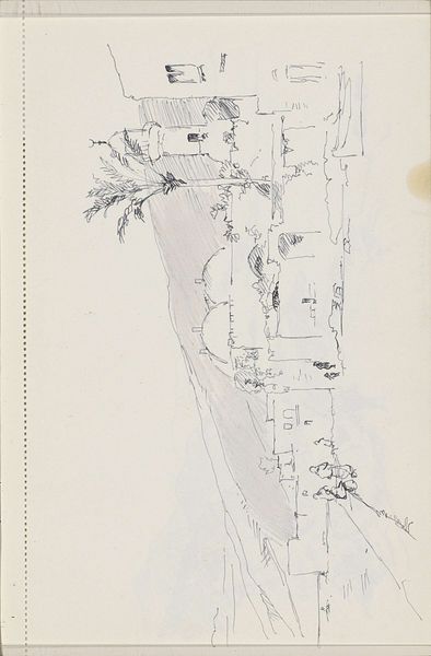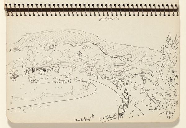 Curator: Right, let’s consider this rather lovely drawing and watercolor on paper entitled "Peter K. Knapp Estate," which dates from around 1936. Editor: Wow, a bird’s-eye view! Immediately gives me this feeling of serene control, almost like overseeing a kingdom. The shades of green are just… hypnotizing! It reminds me of playing SimCity when I was a kid, designing my dream world from above. Curator: Indeed. From a symbolic perspective, these elevated vantage points were quite fashionable amongst the gentry of that era. They implicitly suggest not only the ownership but also the governance of the space—akin to a pastoral manor. Editor: So, it’s more than just a pretty landscape? More of a statement? Curator: Precisely! The winding paths, manicured lawns, even the specific placement of the trees; all point towards a very particular aesthetic that conveys harmony and ordered natural beauty. Look at that little walled garden. These estates aren't just homes; they're visual expressions of identity. The composition invites contemplation on the relationship between domestic architecture and nature. Editor: I’m particularly drawn to the way the buildings themselves are rendered, all rosy and subdued—almost disappearing into the landscape. The shapes suggest both solidity and a sense of lightness. A paradox! The use of watercolor, the greens melding with hints of blues... it really softens what could have been quite rigid lines. Curator: Agreed. In a period defined by shifting social structures and growing industrialization, returning to nature became, in effect, returning to one’s own sense of self-sufficiency, of rootedness, even spiritual clarity. Each deliberate visual cue serves that goal. The vantage from above further isolates this idea, creating a feeling of complete detachment from all else. Editor: It’s like a little slice of Eden! Maybe slightly idealized, slightly unattainable, but ultimately beautiful. It makes me wonder about the artist's perspective. Were they dreaming of such an escape or were they critiquing its very existence? Curator: Possibly both, art is hardly ever one thing! But viewing it today, we’re allowed to consider it for what it communicates about historical notions of privilege, land use, and the aesthetic values assigned to the cultivated landscape. It's really a microcosm. Editor: And I’m grateful for a chance to let this bird’s-eye perspective give my thoughts wings today. Curator: Well said. The dialogue continues…
