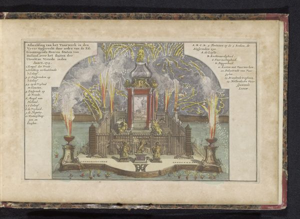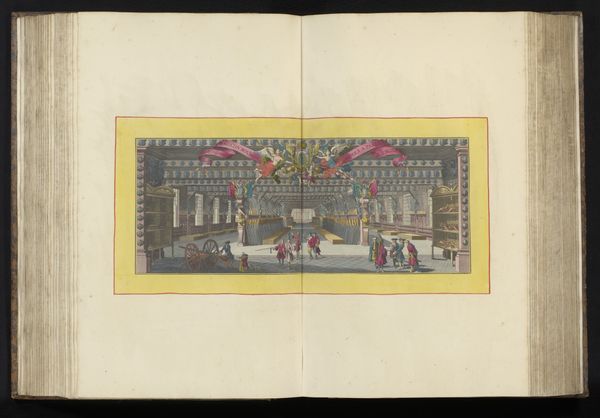 Editor: This intricate print, "View of Saint Peter's Basilica during a Canonization", possibly from 1675-1717, is by Pieter Schenk. The engraving and etching depict an elaborate ceremony. What catches my eye is the contrast between the architectural grandeur and the intimate gathering of figures. What do you see in this piece? Curator: Immediately, I'm drawn to the symbolic density of the image. Notice how the basilica itself, depicted with such meticulous detail, becomes a container for ritual, power, and historical memory. The canonization transforms the physical space into a stage for the sacred. Look at how the artist positions the viewer – almost as if peering into a keyhole of cultural tradition. Editor: That's interesting! I hadn't thought of it as a "keyhole". Do you see any recurring symbols in this image? Curator: Absolutely. The draped fabrics, the eagle perched above, the arrangement of the clergy - each element echoes established symbols of authority and divine presence. The colours themselves, likely chosen with deliberation, would have been understood within the established visual rhetoric of the Baroque period, linking ceremony and identity in both the church and those who engage the image. Ask yourself, what did the artist wish to memorialize? Editor: So, it's less about the individual figures and more about the overarching message of institutional power and tradition? Curator: Precisely. The figures serve as participants, almost absorbed by the immensity of the event and the building itself. This print reminds us that images, even seemingly straightforward depictions, are often powerful carriers of cultural and religious memory, shaping our understanding of the past and the present. What resonates most with you now? Editor: I hadn't really considered how orchestrated an event like this must have been, and how deliberately the symbolism was chosen to reinforce meaning, especially through this depiction of St Peter's Basilica! Thanks!