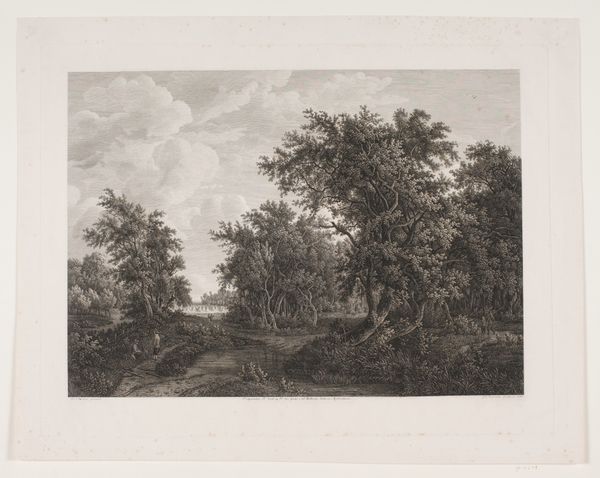 Curator: Let's discuss this evocative print titled "Regenwoud op Kosrae (Ualan), Oostelijke Carolinen, Micronesie" – "Rainforest on Kosrae (Ualan), Eastern Carolines, Micronesia." It's an engraving by Friedrich Wilhelm Heinrich von Kittlitz, created between 1845 and 1852. Editor: My initial impression is of an overwhelming sense of enclosure. The dense foliage, rendered meticulously in black and white, presses in from all sides. There's almost a claustrophobic feeling despite it depicting an open landscape. Curator: It speaks volumes, doesn't it, about the romantic era's fascination with the "exotic" and untamed corners of the world. Consider the history of European exploration and scientific expeditions during this period, especially in Oceania. Von Kittlitz was, in fact, a naturalist and explorer. Editor: You can see how his scientific eye informs the detailed rendering of the plants. Notice the distinct textures and shapes of each leaf, each stem. It's an exercise in precision. And yet, there is some evidence of romanticism in how its depicted overall. Curator: Precisely. While striving for realistic depiction, the artist undoubtedly shapes the narrative. I can’t help but think of the concept of paradise found. The historical and sociopolitical aspects related to environmental exploitation during the era, viewed now with contemporary intersectional awareness. Editor: Absolutely. The use of light and shadow creates a beautiful pattern throughout the print, drawing the eye deeper into the undergrowth and the forest’s overall three-dimensional structure. Curator: Yes. And consider how colonialism has reshaped those landscapes – physically, culturally, economically. We now engage critically with these depictions, not as simple representations, but as part of a long and complex historical process that demands our ongoing scrutiny. Editor: So true. Kittlitz’s approach to representing a tropical landscape combines keen observation and artistic arrangement—we can appreciate it formal qualities even as we consider its broader implications. Curator: A potent reminder of both the allure and the troubled history that so often accompanies such visions. Editor: Yes, truly an image that rewards close looking—and careful consideration.