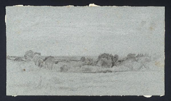 Curator: I’m immediately drawn to the ethereal, almost haunting quality of this sketch. The horizon line is so faint. Editor: Indeed. We're looking at a work simply titled "Landscape," a drawing currently housed in the Städel Museum. It appears to be a study rendered in pencil, chalk, and graphite on paper, a combination that really lends itself to capturing subtle gradations. Curator: The choice of materials emphasizes the scene’s transient mood, don't you think? Graphite offers a metallic hardness while chalk suggests transience. It evokes a memory, perhaps, of a landscape slipping away. A place half-remembered. The paper itself contributes to that feeling, possessing a fragile quality. Editor: Absolutely, I agree. This piece resonates with notions of liminal spaces and borders. In what time, space, or nation is this place rooted? This work encourages us to reconsider how land is politically charged, often fought over for ideological expansion. How is this landscape reflective of cultural imperialism, where those who hold power are permitted to define those outside of the in-group. Curator: An interesting viewpoint! It seems to resonate on many different planes, both political and spiritual. This use of line evokes a sort of symbolic boundary. Is it a border between conscious and unconscious thought, or civilization and wilderness, or visibility and obscurity? Editor: All those oppositions reflect a fundamental struggle—domination. Consider the act of claiming a "landscape" – it implies ownership and control. How do these symbols operate within a legacy that promotes the commodification of the earth and its resources for societal and individual gain? Curator: But doesn't landscape as a symbol predate modernity? We've always had an intrinsic psychological relationship with the land. Editor: True. However, contemporary critical theory urges us to view even the pastoral through a decolonizing lens. "Landscape" reminds us that the Earth bears scars. Curator: Scars and also potential. The work also expresses humanity’s smallness within a larger, timeless continuum. It contains space for a meditative reflection, perhaps also, a reconciliation with time and space. Editor: I’d agree that this art facilitates deep meditation, but meditation can spur action, if directed. By connecting to the image we should act upon its message to benefit oppressed people of all races, genders, or backgrounds. Curator: Perhaps art is a reflection that promotes inward change first, thus resulting in outward change? Thank you for joining me today as we unpacked that dense intersection between identity and nature. Editor: The conversation was invaluable; I encourage the viewer to unpack it for themselves. Thank you.