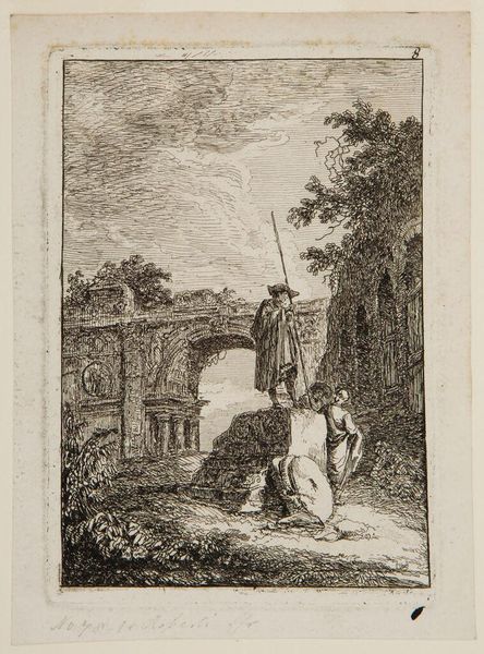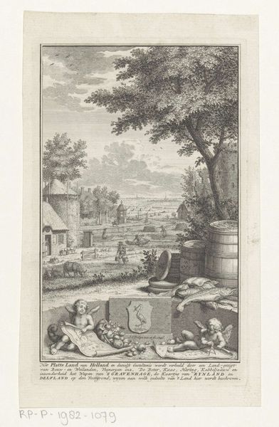 Jan van Vianen created this print titled "Amor bij een zonnebloem" sometime between 1660 and 1726. It is an allegorical scene, common in the 17th and 18th centuries, presenting an emblem of love within a meticulously designed garden. The figure of Amor, or Cupid, sits pensively amidst this constructed paradise, holding a flower. Gardens, during this era, were potent symbols of cultivated nature and aristocratic control, reflecting a desire to manage and perfect the natural world. But notice, the sunflower towers over Cupid. Its face turned to the sun - a symbol of divine love or perhaps the artist's commentary on the overwhelming and sometimes uncontrollable nature of love itself. Consider how the rigid formality of the garden contrasts with the emotional intensity associated with love. Does this emblem suggest the taming of love or the futility of controlling such a powerful force? The image invites us to reflect on the complexities of love, poised between the natural and the artificial. It’s a reminder that love, much like a garden, requires constant care.
