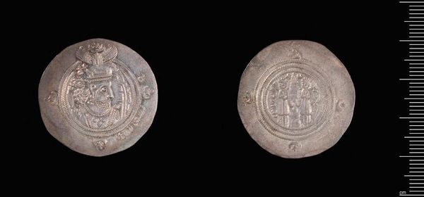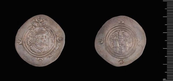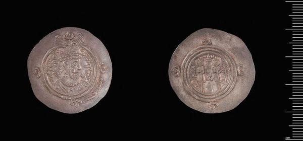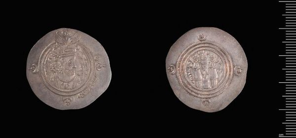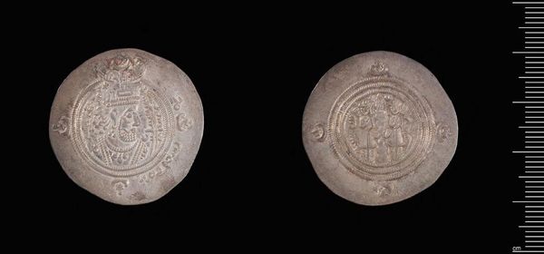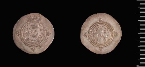 Curator: This is a Dirham of Ubaydullah bin Ziyad, minted in Rayy. A small silver coin, yet packed with historical weight. Editor: The texture is remarkable; the raised designs create a tangible, almost tactile experience. What can you tell me about the iconography? Curator: Well, Ubaydullah was a controversial figure, known for his role in early Islamic history. This coin offers a glimpse into his rule and the complex power dynamics of the time. Editor: So, its value lies not just in its material but in its narrative. How does its design contribute to the story? Curator: The coin's imagery and inscriptions likely served as symbols of authority and legitimacy during a period of political and social upheaval. It speaks volumes about identity. Editor: Yes, and visually it's fascinating how such intricate details were captured on something so small. Curator: Absolutely, it allows us to connect with a distant past. Editor: A poignant reminder of history's layered narratives compressed into a single, weighty object.