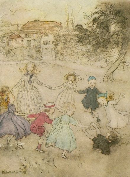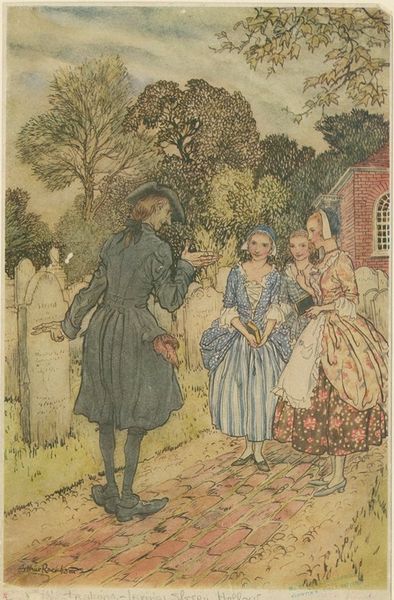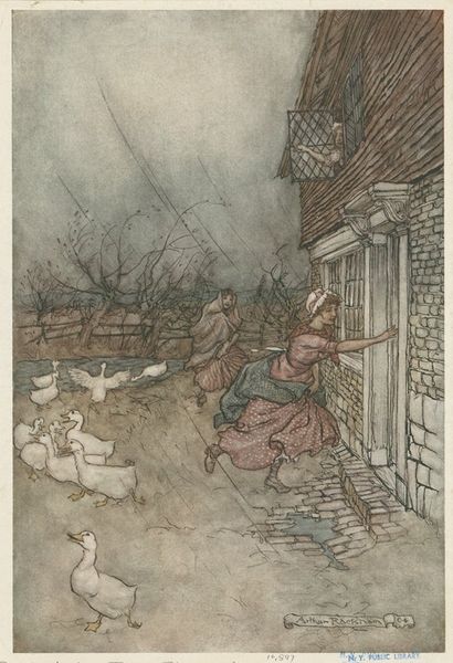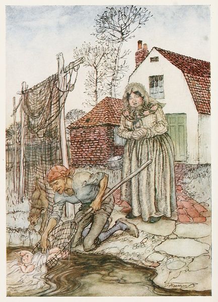 Arthur Rackham conjured this eerie scene with ink and watercolor, inviting us into a world where the mundane brushes against the uncanny. Note the black cat perched atop the skeletal tree. Throughout history, the black cat has been a powerful omen, linked to witchcraft, lurking in shadows, embodying both mystery and ill fortune. Think of the ancient Egyptians, who revered cats, or medieval Europe, where they became symbols of paganism and heresy. Observe the contorted trees, their branches like grasping claws. Trees, often symbols of life and wisdom, are here twisted into menacing figures. This motif echoes through art history, from the haunted forests of Northern Renaissance painting to the gnarled, expressive trees in German Expressionism, each reflecting a deep-seated fear of nature's untamed power. This interplay of light and shadow, familiar figures and ghostly symbols, taps into our collective memory. These images, passed down through folklore and art, continue to provoke a primal sense of unease. Like recurring dreams, they remind us that the boundary between reality and the supernatural is often blurred.