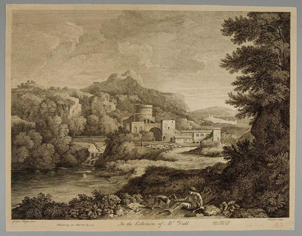 Curator: Immediately, I’m struck by the image's gentle melancholy. It’s as though the artist has captured a fleeting moment of reflection on lost grandeur. Editor: This is a rendering of Heidelberg Castle by Baron Stephan von Stengel, part of the Harvard Art Museums collection. Notice how Stengel situates the castle within its natural setting. Curator: Yes, and the goats, too—there’s a sense of bucolic harmony, even with the ruins looming. The goats almost feel allegorical, like symbols of enduring life. Editor: Indeed, the ruins can symbolize the transience of human power. The goats might represent the continuity of nature, perhaps hinting at deeper themes of resilience. Curator: There is an interesting contrast that I noticed between the detail on the animals at the forefront and the haziness of the mountains. A very intriguing decision artistically. Editor: Stengel seems to be playing with our perception, drawing us closer to the immediate while hinting at the vastness of history and time. Curator: I agree, there is a real sense of time's passage imbued in the art piece. Editor: It’s a beautiful reminder that even in decay, there's enduring beauty and meaning to be found.