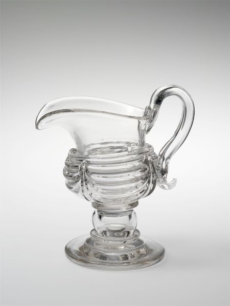 This pitcher was made by the New England Glass Company sometime between 1818 and 1888, using molded and blown glass. This was a period of intense industrialization and social change, and its clear, simple forms reflect this. The glass itself is incredibly pure, showing the technical expertise achieved during the industrial revolution. Molten glass was blown into a mold to create the basic shape, then manipulated by skilled artisans to add details like the handle and spout. These touches are a testament to the enduring value of handcraft, even in the face of mechanization. The ridges on the spout aren't just decorative; they're functional, designed to control the flow of liquid. This combination of form and function is a hallmark of industrial design, aiming to make everyday life more efficient and aesthetically pleasing. Objects like this pitcher challenge traditional art boundaries, asking us to consider the artistry inherent in industrial production and the social context that shapes our material world.