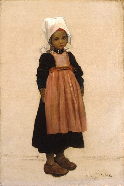 Curator: Let's turn our attention to Jules Breton's "Head of a young Breton, study for Pardon," created in 1868. Breton, as many know, focused on rural life and peasantry during the 19th century, often portraying their customs and traditions. What strikes you initially about this oil-on-canvas work? Editor: She feels like a fleeting dream. Muted colours, soft brushstrokes… it’s as if the artist was trying to capture a memory before it faded entirely. It’s incredibly gentle. Curator: The subtlety is key. Breton's academic realism sought to idealize and simultaneously document peasant life. We must remember these "pardons" were religious festivals. This study shows us the detailed observations he made before incorporating elements into large-scale narrative paintings. He wanted to ensure ethnographic accuracy but through a certain rose-tinted lens. Editor: That lens! I see what you mean. The soft gaze...it feels romanticized, a longing rather than a raw depiction. Yet there is a palpable innocence. Like she is peering directly at us, without any artifice. Curator: Exactly. While we recognize this tendency toward idealization which appealed to the urban art market eager to consume representations of rural simplicity and piety, one can see the intense preparation that he put into portraying a specific regional identity. These "types" had to read correctly. Editor: And the colours – that soft white cap against her blushed skin? Beautifully done, even if a touch sentimental perhaps? I am now thinking about all the preparatory portraits, studies, and sketches created at that time; each hoping to evoke similar emotive themes through these types. Curator: I agree. Viewing “Head of a young Breton” not as the final painting but as one stepping stone in the machine of art creation lets us truly see Breton's academic style in action, his methods of ethnographic study on full display. Editor: True, the image invites a dialogue between romanticism and a genuine, although meticulously curated, reality. It hints at the complicated layers beneath rural idylls, perhaps inspiring curiosity and respect towards these communities.