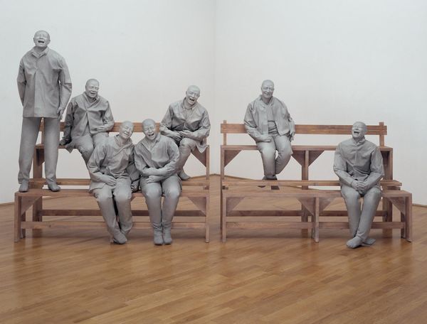 This work by Goran Despotovski, titled "Syndrome Imbalance," presents a stark, unsettling scene. Figures in formal attire, their heads wrapped in white fabric, gather around a table. One figure, however, defies gravity, levitating horizontally as if in a state of suspension. The bound heads evoke images of ancient burial rituals, perhaps a mummification or preparation for the afterlife. The suspension of the figure brings to mind religious iconography, consider the depiction of saints levitating during spiritual ecstasy. We find parallels in shamanistic traditions where the soul is believed to leave the body, transcending the earthly realm. This suspension may represent a profound disconnect. It touches upon our collective anxieties about societal pressures, conformity, and the individual's struggle to find balance amidst chaos.