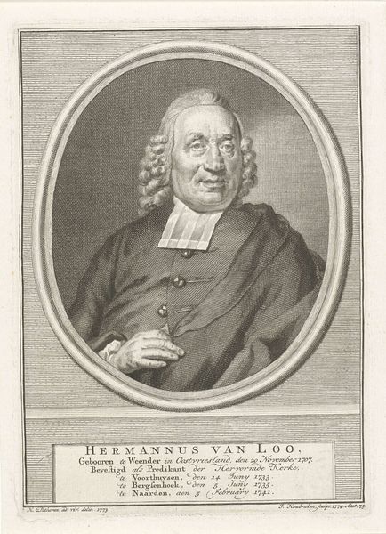 Pieter Tanjé made this portrait of Willem Vink using engraving, a printmaking technique that requires great precision. Engraving begins with a metal plate, usually copper. The artist uses a tool called a burin to carve lines directly into the plate's surface. These lines create grooves that will hold ink. The plate is then inked, and the surface wiped clean, leaving ink only in the engraved lines. Finally, damp paper is pressed onto the plate, transferring the ink and creating the print. This process demands careful planning and skilled execution. The depth and spacing of the lines determine the tones and textures of the image, as you can see in the delicate rendering of Vink’s face and wig. The controlled lines and meticulous detail give the portrait a formal, almost scientific quality, befitting Vink's profession as a lecturer of anatomy and surgery. The labor-intensive nature of engraving contrasts with the mass-producible nature of printmaking. The portrait, then, exists in a fascinating tension between craft and industry.