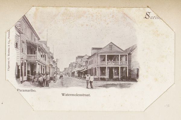 This photograph of the Saramaccastraat with a bridge and church was taken by Eugen Klein. It's a small piece, but holds so much. The tones and textures are muted and grainy, which lends it a documentary, old-timey feel. Look at how the light catches the clapboard on the buildings, each plank crisply rendered, like a set of orderly brushstrokes. The bridge is a subtle dark curve, barely interrupting the street's long diagonal. There's a lone woman standing on the bridge, her white dress a bright focal point amidst the shadows. The way she's positioned, slightly off-center, disrupts the symmetry of the scene and brings it alive. It's as though Klein is using her presence to ask us questions about the city and its inhabitants. This image reminds me of Walker Evans' documentary style. Like Evans, Klein captures the everyday, transforming the ordinary into something strangely profound. The piece invites you to slow down, observe, and create your own narrative of this bustling street.