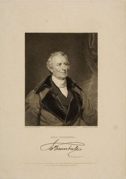 Asher Brown Durand engraved this portrait of John Trumbull, capturing the American artist who immortalized pivotal moments of the Revolution. The drapery in the background is not merely decorative; its undulating folds echo the classical toga, linking Trumbull to a lineage of historical and artistic eminence. Consider its evolution: From ancient sculptures to Renaissance paintings, drapery has signified status, drama, and the unfolding of destiny. Here, it grounds Trumbull in a tradition of visual authority and imbues him with a sense of timelessness. The gaze of the subject, directed slightly off to the side, invites speculation. It embodies the psychological dimension of portraiture. Trumbull looks towards the future but remains rooted in the past, which is ever-present in his memory. The echoes of classical motifs remind us that art is not created in a vacuum, but it is constantly re-emerging in new forms, bearing witness to the relentless flux of history and human experience.