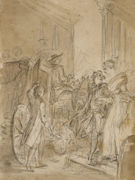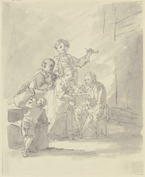 Editor: This is Leonaert Bramer's "The Circumcision" at the Harvard Art Museums. It's a pen and brown ink drawing, quite small. I'm struck by the almost casual depiction of such a significant religious scene. What can you tell me about its historical context? Curator: Consider how the Dutch Republic, Bramer's context, negotiated religious themes after its break from Catholic Spain. Do you see a conscious effort to humanize the scene, moving away from grand, theatrical depictions favored elsewhere? Editor: Yes, definitely. It’s like a snapshot, more intimate than imposing. Was this intimacy a common artistic choice at the time? Curator: Increasingly so. The patronage of art was shifting, with a growing middle class desiring art for their homes, art that reflected their values. How does this smaller scale and the drawing medium itself contribute to that sense of intimacy? Editor: The sketch-like quality makes it feel very immediate, like a glimpse into a real event. I see the shift in patronage influencing the art itself. Curator: Exactly! It reveals much about the changing relationship between art, religion, and society.