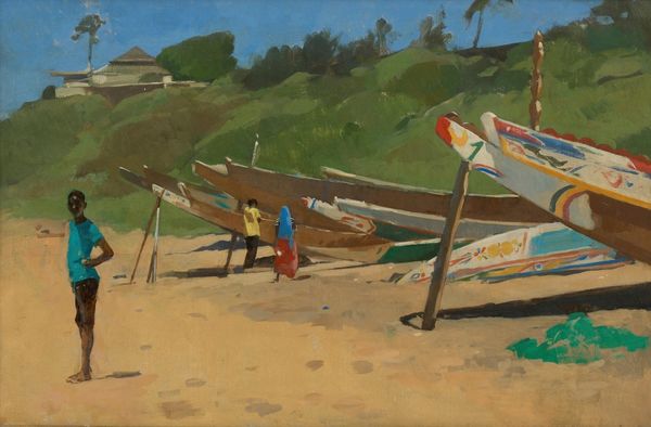 Henri Matisse painted ‘Belle Ile (Le Port De Palais)’ with oils, during a time of significant artistic and societal change. Matisse, situated within a rapidly modernizing world, sought to capture fleeting moments and subjective experiences. This vibrant painting encapsulates the port of Palais on Belle Ile. It is alive with an emotional intensity, which reflects the artist's response to the island's raw, untamed beauty. Matisse eschews traditional representational accuracy in favor of bold colors and simplified forms. This artistic choice mirrors a broader shift in early 20th-century art, away from academic realism towards more expressive, personal modes of representation. Consider how Matisse, born into a society undergoing rapid industrialization, may have been drawn to the island's rugged landscape as a means of connecting with a more elemental way of life. The painting then, becomes not just a depiction of a place, but an embodiment of a search for authenticity, a yearning for connection with the natural world amidst the growing alienation of modern life.