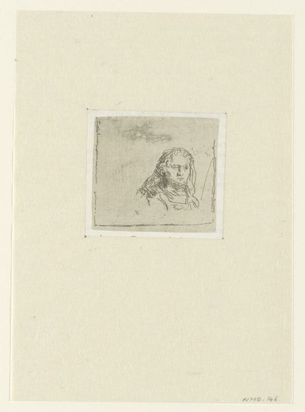 Editor: This is Hermine David's "Saint Bernadette," an etching. It's a small, delicate work; what strikes me is the stark contrast between the figure and the dark, almost chaotic, surrounding elements. What can you tell me about it? Curator: The etching process itself is crucial here. Consider the labor involved, the acid's bite into the metal plate, and the multiple prints that could be made. This image of Saint Bernadette becomes a commodity, distributed and consumed within a specific religious and social context. How does that change your understanding of the work? Editor: I guess it moves it away from pure religious devotion and towards something more... accessible? Less rarefied? Thanks, that really clarified it.