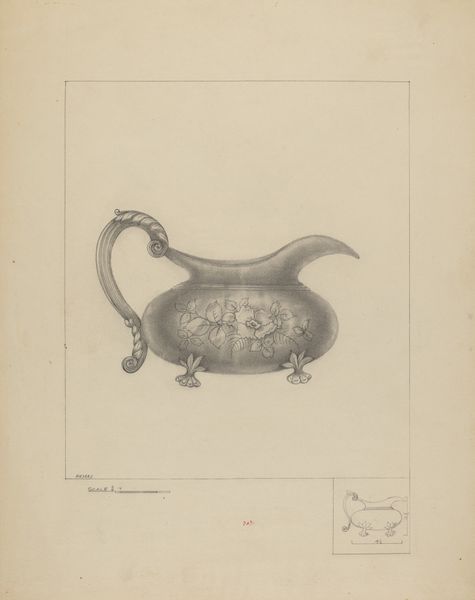 Henry Meyers made this drawing of a pewter pitcher sometime during his long life, using graphite on paper. Look closely, and you'll notice that the variations of gray, achieved with simple pencil strokes, transform a two-dimensional surface into a shimmering, almost-real object. It’s like watching a magic trick, isn't it? The beauty of this piece lies in its quiet confidence. The pencil lines aren't trying to be flashy; instead, they meticulously capture the details of the pitcher. From the curve of the handle to the delicate feet, everything is rendered with care. I find myself particularly drawn to the subtle shading on the body of the pitcher. It’s like Meyer is almost caressing the object, bringing it to life with each gentle stroke. This piece reminds me a little of Giorgio Morandi's still lifes. Both artists find beauty in the mundane, turning everyday objects into something extraordinary. Ultimately, it celebrates the simple, quiet moments of observation and the joy of bringing those observations to life on paper.