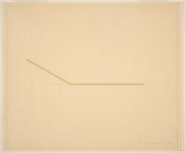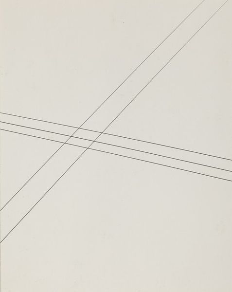 Editor: We are looking at Fred Sandback's "Untitled (study for 3-part diagonal construction for the Kestner Gesellschaft, Hanover, not executed)" from 1987, which is a drawing. Its lines are so subtle they almost disappear. It gives the impression of lightness and ephemerality. How do you interpret this work, considering it was a proposal for a construction that never came to be? Curator: That absence, the “not executed” part of the title, is key. Sandback’s work engages deeply with the context of the gallery and challenges conventional notions of sculpture. Think about the late 1960s and 70s when minimalism emerged, questioning art's marketability and institutional critique. The very act of proposing a minimal intervention, almost invisible, for a prestigious institution like the Kestner Gesellschaft raises questions about the role and expectations of art itself. How does its potential public visibility influence your understanding of this subtle proposal? Editor: It makes me think about how much power institutions have in validating or suppressing artistic visions. Did the piece being "un-executed" impact Sandback's career or artistic standing at the time? Curator: The piece's non-realization certainly highlights the complex relationship between the artist, the institution, and the potential audience. But Sandback's position was secure, though. He critiqued but also benefitted from institutional support, revealing the art world’s inherent contradictions. Think of it as a silent, ghostly proposal, eternally questioning the institution from the realm of the unmade. What do you take away from knowing that, despite being "un-executed", the idea remains preserved, circulated, and contemplated in a drawing? Editor: That's a great point, it almost feels like the drawing challenges the necessity of the physical object itself. I initially focused on its delicate aesthetics but now, it's clear the drawing’s value comes from what it implies about the broader art system. Curator: Exactly! This interplay between absence and presence, idea and execution, and institution and artist, makes this subtle drawing incredibly rich and insightful.